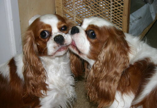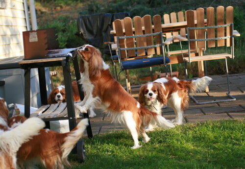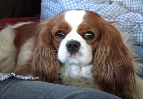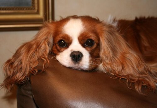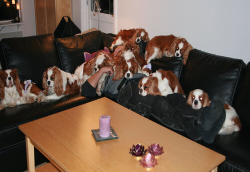 Här ligger Roger och vilar på soffan... om man tittar riktigt noga så hittar man honom underst i högen av alla hundarna!