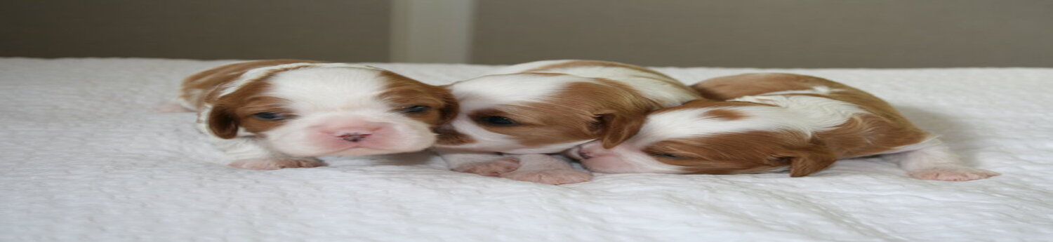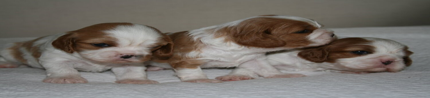 Två tikar och en hane födda 13/4-14. Alla valpar är tingade.Alla våra Cavalierer kontrolleras noga innan de används i avel och har hjärta, ögon samt knä utan anmärkning.